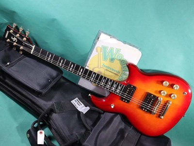 シェイプが新しくなり、1981年のカタログから掲載されたFSシリーズ。今回、SG-2000の血を引くTクロスメイプル+ワンピース構造の最高峰、SF-7000が入荷致しました。 トップはメイプル、バックはマホガニー、ネックはメイプルをマホガニーで挟んだスルーネック構造、指板はエボニー、ピックアップはオリジナルのF-Vが2基マウントされております。 構えた時に肘が当たる辺りには4cm程の線キズが2つ見られ、付近にはゴマ粒程の打痕が確認出来ます。フロントとリアのピックアップの間には米粒程の打痕があります。またトーンコントロール付近には10cm程の線キズが見られます。 バックには年代相応のバックル傷が見られ、エンド部分の角には擦り傷が多く確認出来ます。サイドの1弦側、6弦側共に米粒から小豆大程の打痕が所々に見られます。ヘッド裏の1弦ペグ辺りには15mm程のウェザーチェックがあります。ヘッドトップの角には打痕や塗装のチップがいくつか見られます。 パーツに関してはオリジナルで、ピックアップデイトが昭和55年、 メッキパーツについては多少ゴールドメッキが薄くなっており、所々にプツプツとした痛みがあります。またバックのコントロールパネルやスイッチパネルには長く保護シールを貼っていた様子で、剥がした痕がガサガサしております。もちろん支障はございません。 全体的に年代相応の傷や打痕はありますが、演奏性良くセットアップされた楽器です。 ネックは良好なコンディションが保たれており、トラスロッドもきちんと機能しております。フレットは調整済みで高さも十分残っており、スムーズに演奏出来ます。 各トーンポットはPUSH-PUSHとなっており、バイサウンドと呼ばれるタップスイッチとなっております。ハムバッカーからシングルへの切替えが出来、当時としては画期的な機能でした。 サウンドはスルーネック構造もあり、サスティーン良く鳴ってくれます。またアルニコマグネットを採用したピックアップはマイルドでウォームなサウンドを奏でてくれます。またスルーネック構造により、ハイポジションでの演奏性がとても良い楽器です。 お探しだった方は、ぜひこの機会にご検討ください。 重量:3.92KG 汎用のギグケース付きです。 出張買取はじめました!お気軽にご相談ください! |
