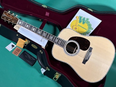 マーチン輸入総代理店・クロサワ楽器店のオーダーによる、2025年限定生産モデルのCustom Shop D-45が入荷しました。 生産本数はわずか1本のみという非常に貴重なモデルで、厳選された最高級の材とスペックによってカスタムオーダーされたスペシャルなD-45です。 今回入荷したD-45には、プレミアムグレードの中から厳選されたアディロンダック・スプルース、サイド&バックにはエキゾチックな杢目が美しいプレミアムグレードのZiricote(ジリコテ)が採用されています。ジリコテは現在マーチン社のストックの中でも高級材のひとつで、カスタムオーダーのみ使用されています。ネックはジニュイン・マホガニー、指板およびブリッジはエボニー製で、ロングスロットサドル、ヘッドプレートにもジリコテが使用されています。 2025年仕様として最新スペックにアップデートされた要素も盛り込まれており、ネックプロファイルはGE Modified Low Oval、ナット幅は44.5mm、ブリッジは滑らかな曲線を描くGE Modern Belly Bridgeを採用。ブレーシングはGEスタイルのフォワードシフト・スキャロップド・ブレーシングで、材にはアディロンダック・スプルースが使用されています。 スタンダードシリーズではボディトップにトナー着色が施されるのが一般的ですが、本モデルは着色のないクリアラッカートップを採用しており、アディロンダック・スプルースの白く美しく新鮮です。 エボニー指板にはStyle-45のヘキサゴンインレイ、ヘッドからボディ全面にかけては美しいアバロンのパーフリングが施された45スタイル。ロゼッタリングもアバロンで装飾されており、高級感と華やかさを兼ね備えたルックスです。 ペグはグローバー製のバタービーンノブのゴールドを採用し、動作もスムーズです。 新品ながら、豊かな低音弦の倍音と艶やかで伸びやかな高音弦の響き、ストローク時のクリアで華やかな鳴りとバランスとの良さは、まさにD-45の名にふさわしいサウンドです。もちろん、新しい楽器ですので、弾き込むことでさらにこなれ、将来的により深みのあるサウンドへと育っていくと思われます。 工場出荷時の状態で、弦高は12フレット上で6弦:2.6mm、1弦:1.8mmと弾きやすいアクションにセットされています。トラスロッドもチェック済みで問題ありません。 生産本数わずか1本のみの大変貴重なCTM D-45を手にできるチャンスです。 オリジナルハードケース、メーカー保証3年付き。お問い合わせをお待ちしております。 MARTIN D 45 CTM STYLE 45 Ziricote(ジリコテ) NEW 動画紹介! 出張買取はじめました!お気軽にご相談ください! |